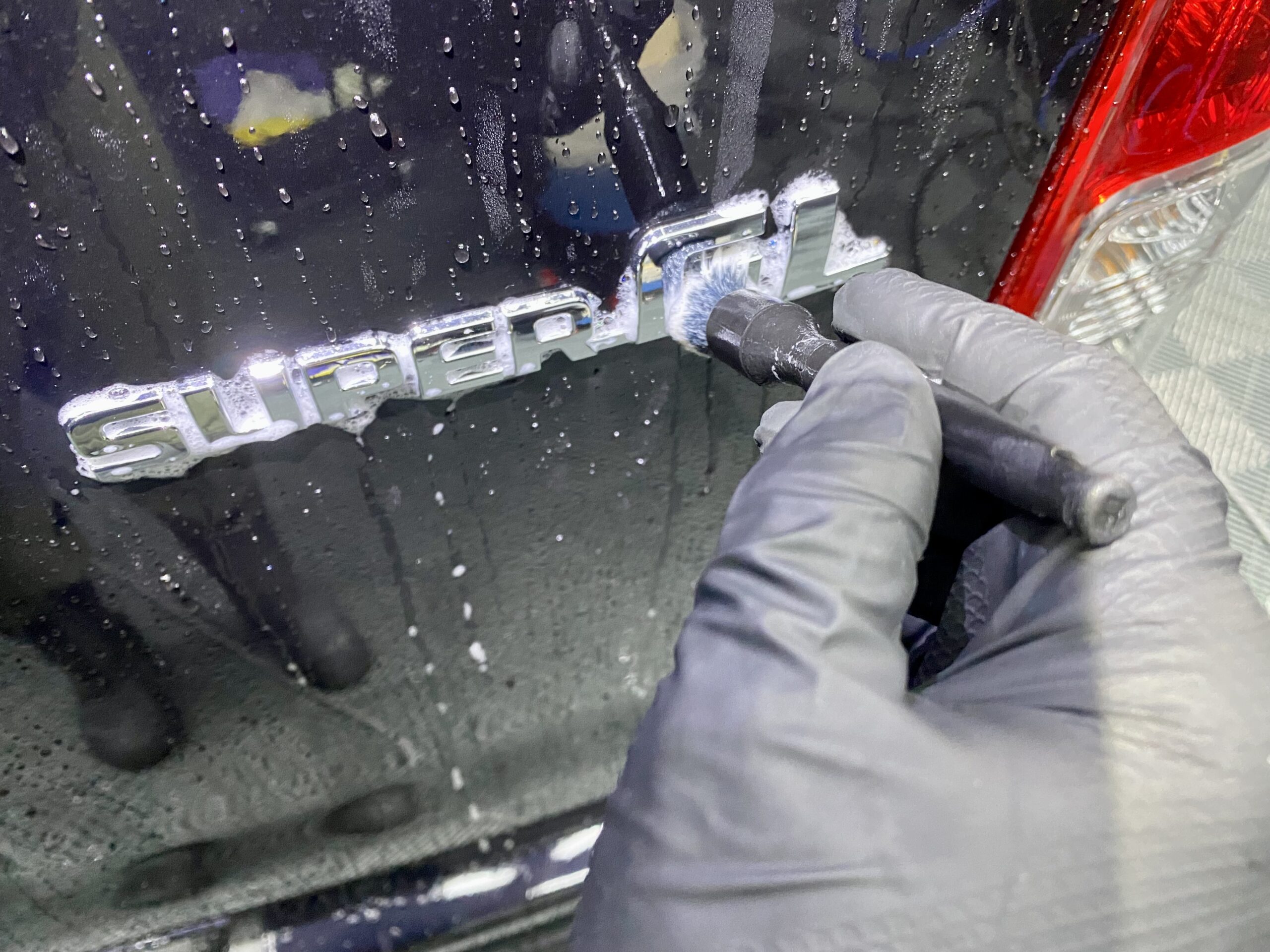 砂埃なども洗車キズの原因になりますので、この段階でしっかりと落としておきます。