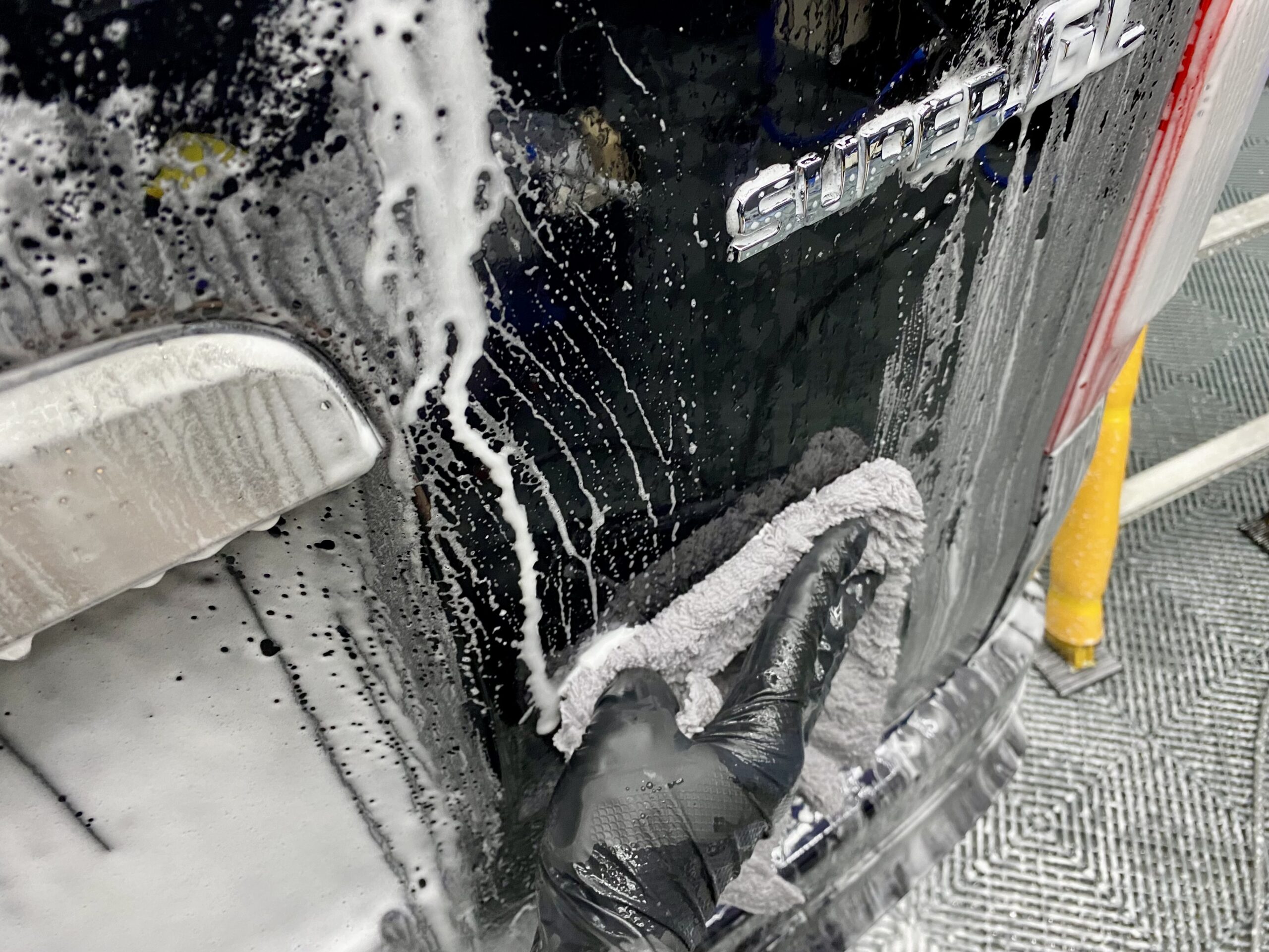 除去剤使用後は成分残りしないよう、再度泡洗車。