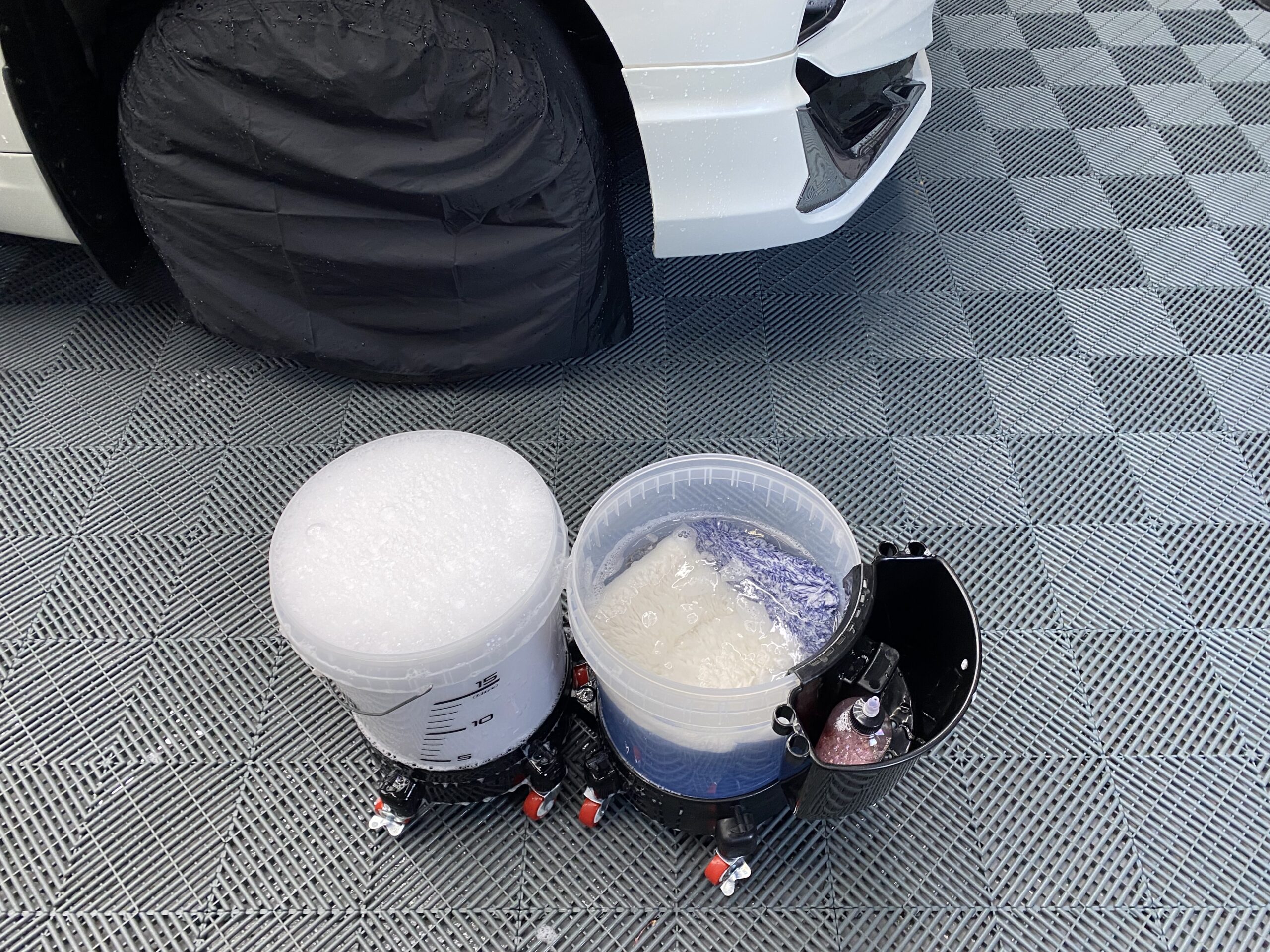 2バケツ&数種類のスポンジにて抜かりなく洗っていきます。