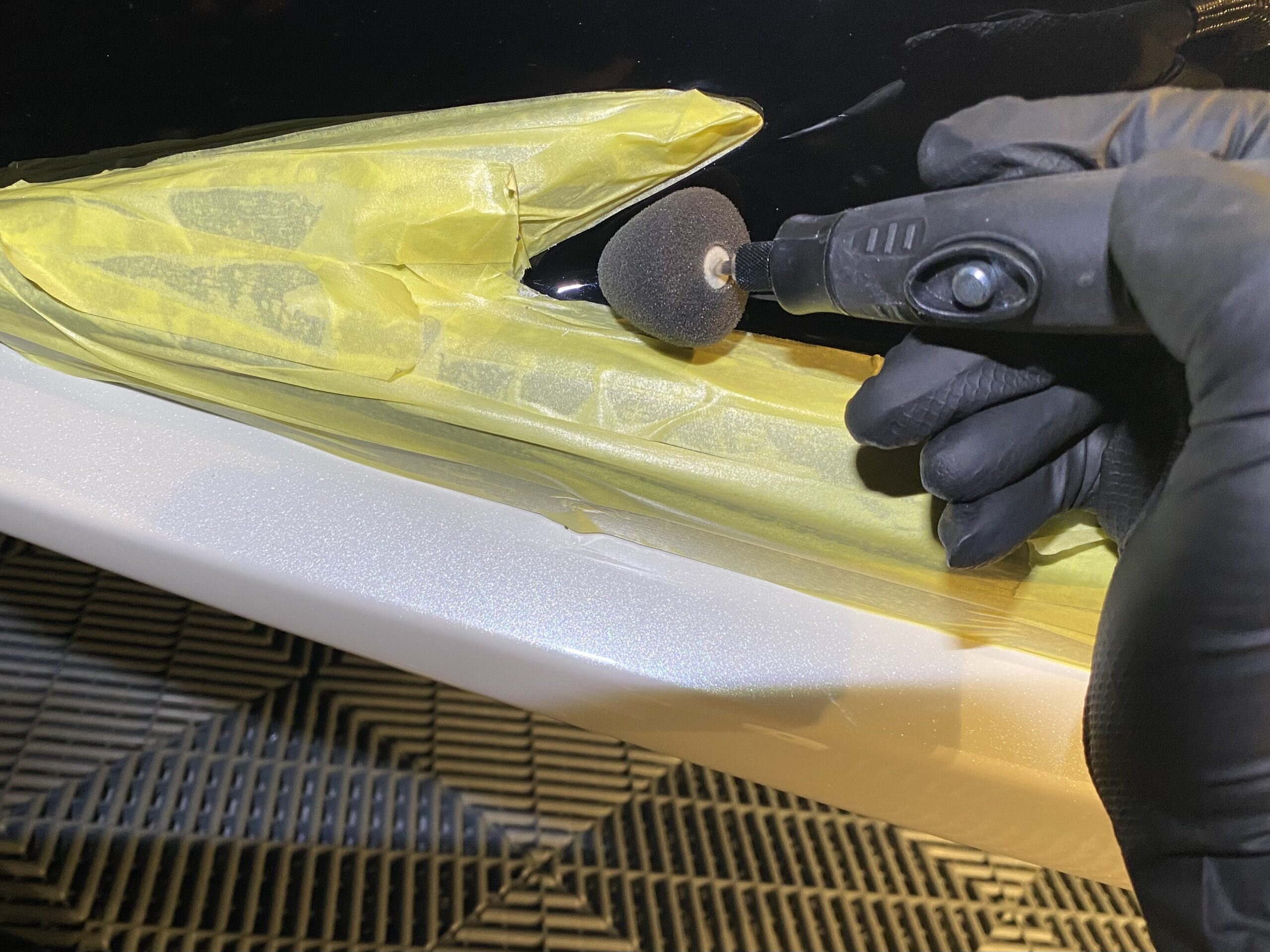 細かな箇所も様々なポリッシャーを駆使して磨きます。(施工プランによって異なります)