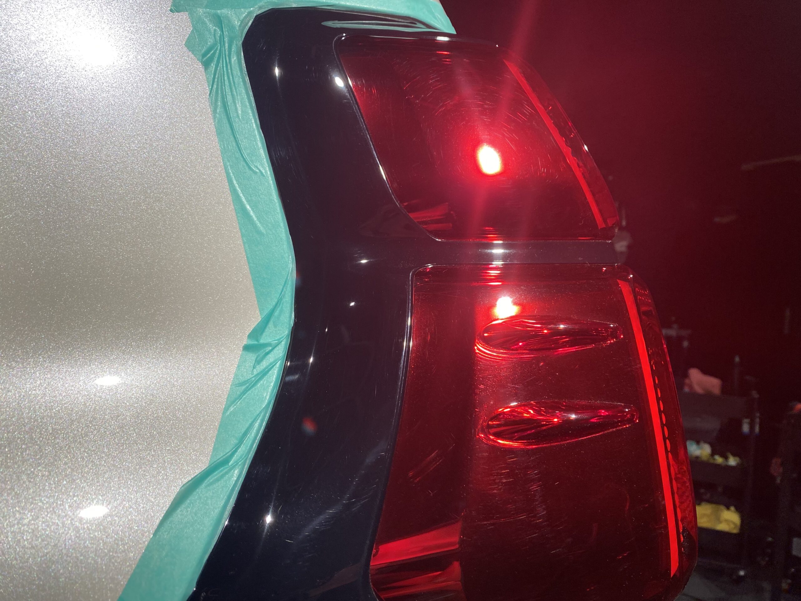 サイドパネルは自作ライティングスタンドにて適切な照射角度でキズを洗い出します。