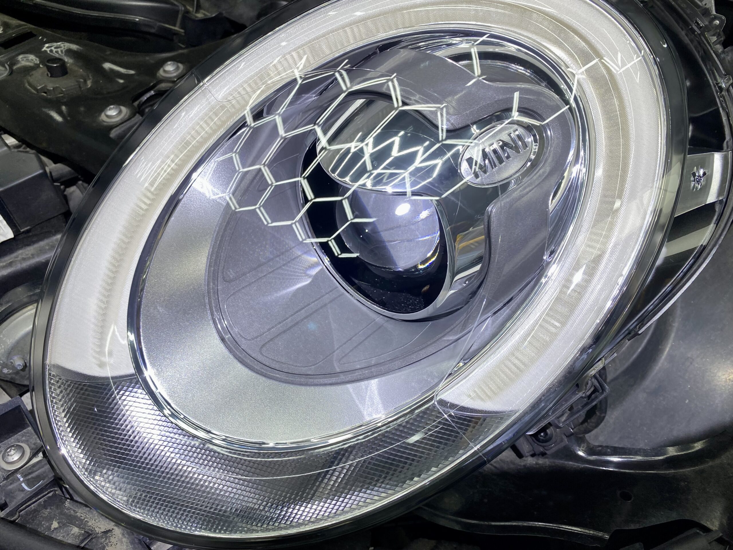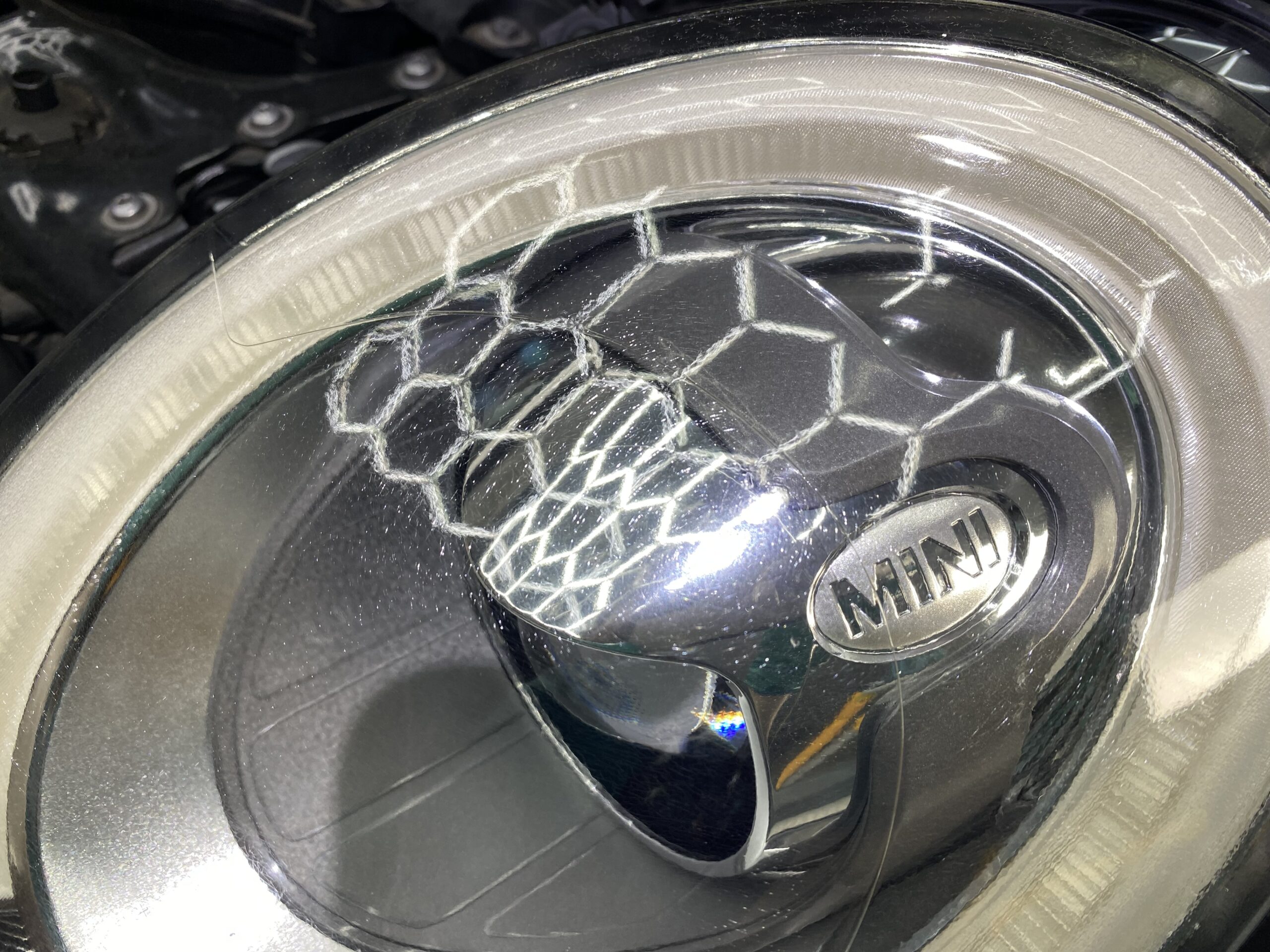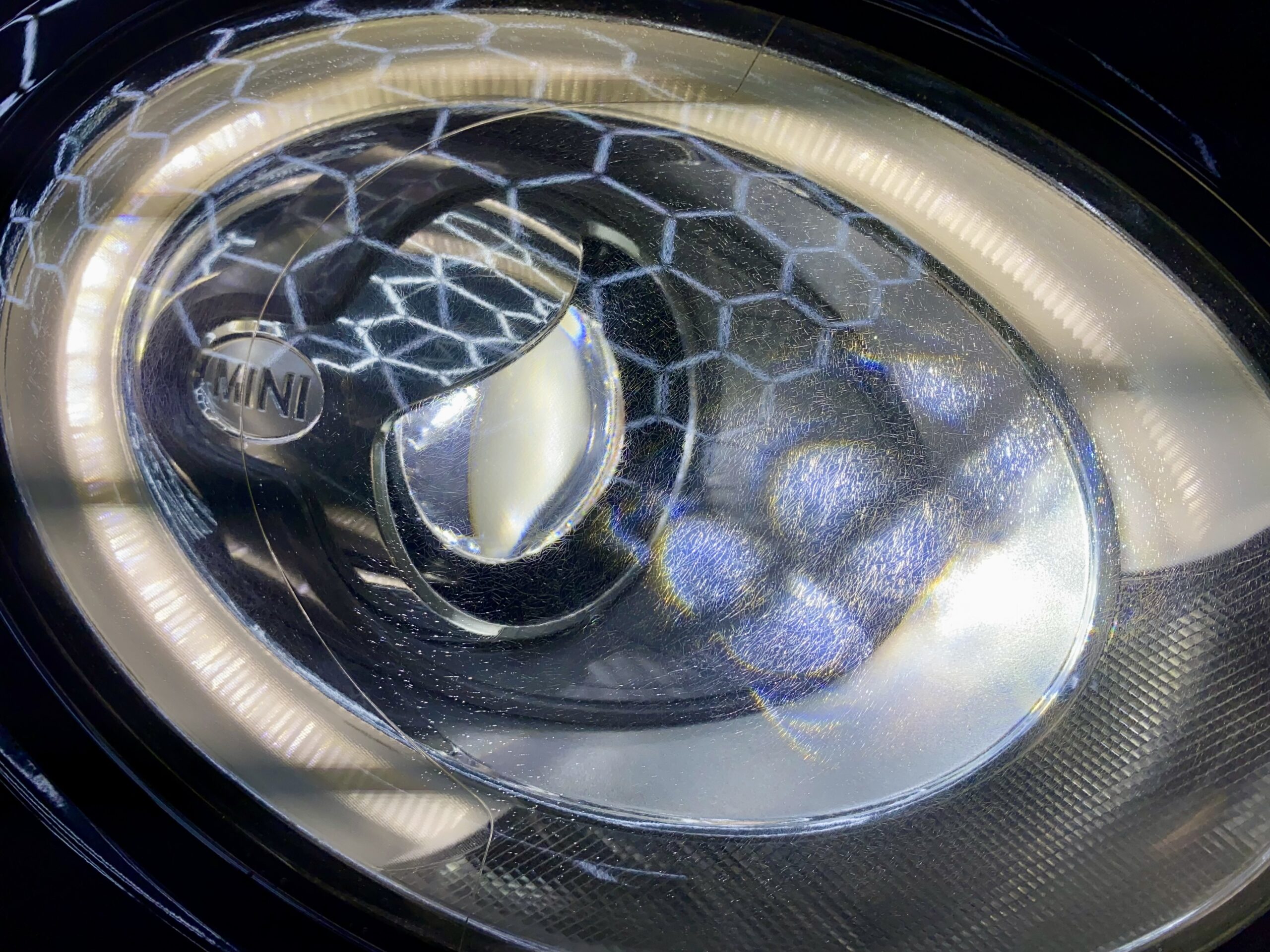【ミニ クラブマン ヘッドライトリペア】 クラック(ひび割れ)除去