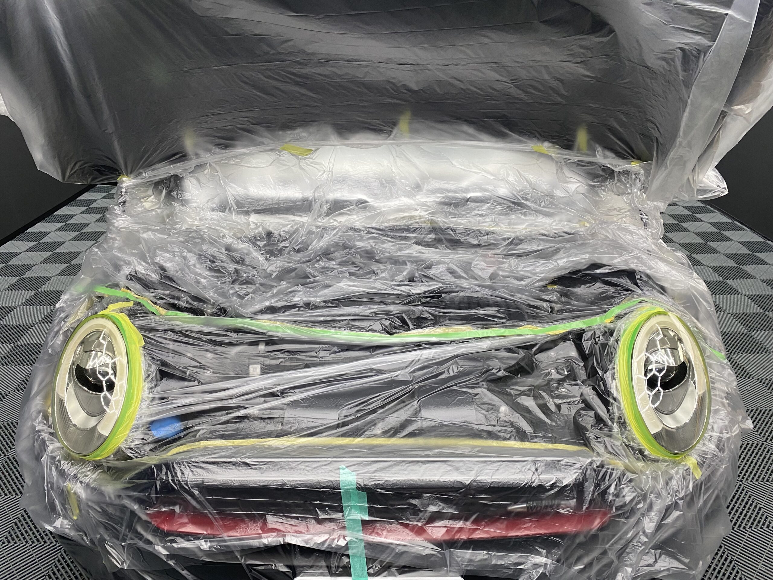 ヘッドライトと周辺部分を洗ったらしっかりと養生します。